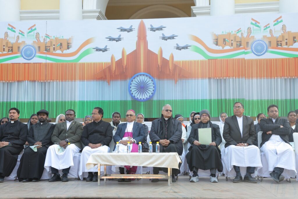 इस वर्ष Agra Cathedral Church Republic Day कार्यक्रम का विषय (Theme) ‘स्वर्णिम भारत, विरासत-विकास’ रखा गया था, जो आधुनिकता और परंपरा के अद्भुत संगम को दर्शाता है. समारोह का शुभारंभ ईश प्रार्थना के साथ हुआ। सेंट पीटर्स कॉलेज के प्रधानाचार्य फादर डॉ. ऑल्विन पिन्टो (Fr. Alwyn Pinto) ने सभी धर्मों और जातियों के बीच भेदभाव मिटाने और एकजुटता के साथ कर्तव्य पथ पर अग्रसर होने की प्रार्थना की. इसके पश्चात मुख्य अतिथि आर्बिशप डॉ. राफी मंजलि, बिशप डॉ. अल्बर्ट डिसूजा और आयोजक प्रधानाचार्य डॉ. ऑल्विन पिन्टो ने संयुक्त रूप से ध्वजारोहण (Flag Hoisting) किया और तिरंगे को सलामी दी.