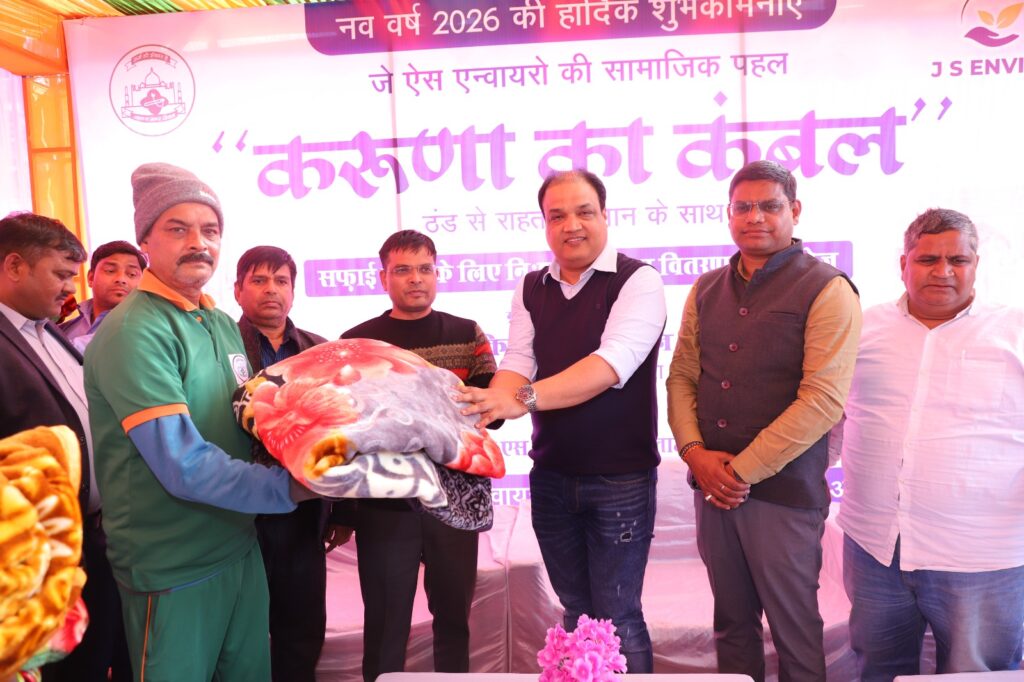 आगरा: ताजनगरी को स्वच्छ और सुंदर बनाए रखने में दिन-रात एक करने वाले स्वच्छता मित्रों के प्रति सम्मान व्यक्त करने के लिए रविवार को एक विशेष समारोह का आयोजन किया गया। नगर आयुक्त अंकित खंडेलवाल (IAS) के निर्देशानुसार, जे.एस. एन्वायरो सर्विसेज प्राइवेट लिमिटेड द्वारा ‘सामाजिक पहल: करुणा का कंबल’ कार्यक्रम आयोजित किया गया। इस दौरान कड़ाके की ठंड के बीच शहर की सफाई व्यवस्था संभालने वाले ‘स्वच्छता सारथियों’ को कंबल और पीपीई किट (PP Kit) वितरित कर उनके योगदान की सराहना की गई।