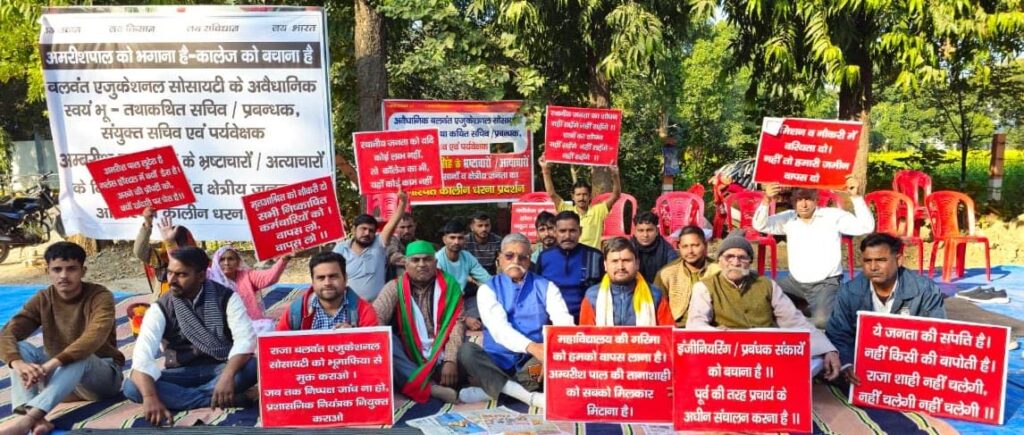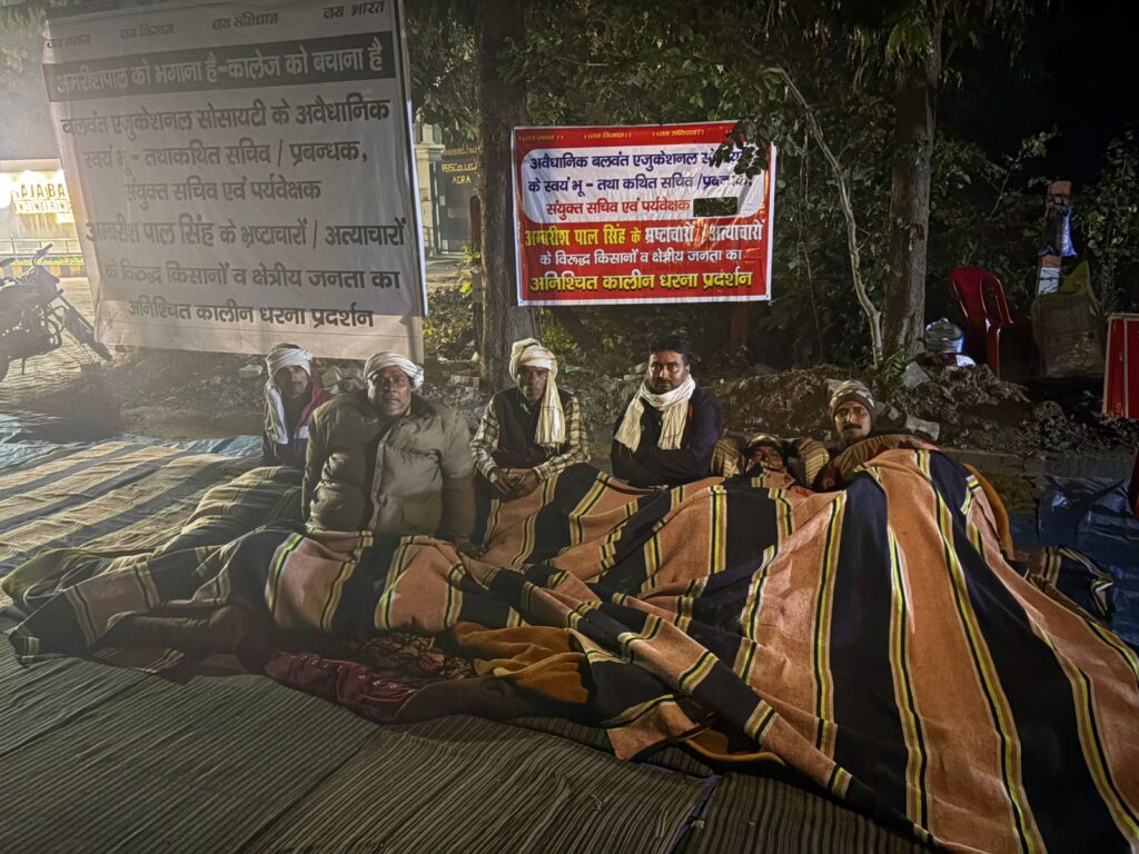 आगरा। ऐतिहासिक बलवंत एजुकेशनल सोसाइटी में व्याप्त कथित अनियमितताओं, भ्रष्टाचार और तानाशाही के विरोध में बिचपुरी में चल रहा जनआंदोलन थमने का नाम नहीं ले रहा है। रविवार को यह धरना अपने दसवें दिन में प्रवेश कर गया। कड़ाके की सर्दी और खुले आसमान के नीचे बैठे होने के बावजूद आंदोलनकारियों का जोश कम नहीं हुआ है। इस बीच, आंदोलन को एक नया मोड़ तब मिला जब किसानों का एक उच्च-स्तरीय प्रतिनिधिमंडल फतेहपुर सीकरी के सांसद राजकुमार चाहर से मिला। जहाँ एक ओर सांसद ने न्याय का भरोसा दिलाया है, वहीं दूसरी ओर किसान नेताओं ने प्रशासन को स्पष्ट चेतावनी दे दी है कि यदि जल्द ही उनकी मांगों का सहानुभूतिपूर्वक समाधान नहीं निकाला गया, तो वे सड़कों पर उतरकर उग्र प्रदर्शन करने को बाध्य होंगे।
