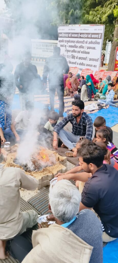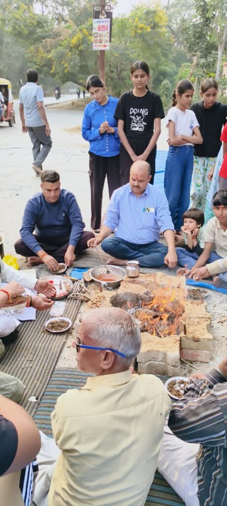 हवन से तेज हुआ आंदोलन — ग्रामीणों ने कहा: “प्रबंधन की बुद्धि शुद्ध हो”